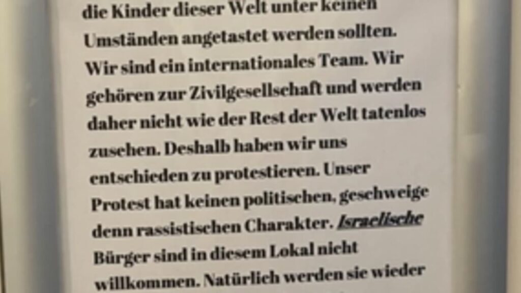 An award-winning pizzeria in Fürth, Bavaria, has provoked widespread condemnation after displaying a sign on its door declaring Israeli citizens unwelcome. The sign, which remained up for several hours on Sunday, was described by the Jewish Community of Fürth (IKG Fürth) as a deeply offensive and discriminatory act, bearing disturbing echoes of the Nazi era, reports The Jerusalem Post.